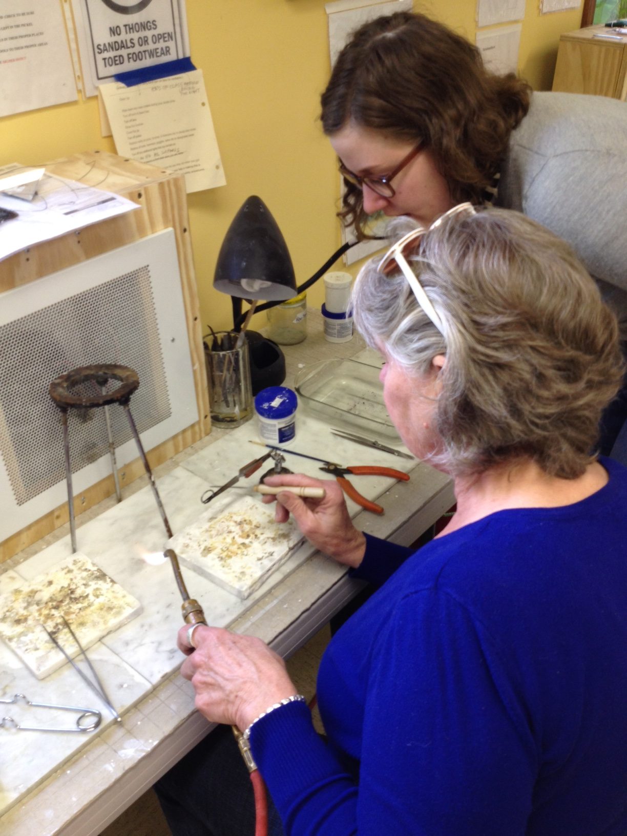 Studio Membership can provide just the inspiration you need. We have everything for soldering silver jewelry, painting, collage, stained glass, as well as kilns for fused glass, ceramics, Precious Metal Clay, and much more. Members can attend any and all Open Studio Hours. You’ll become part of our creative family, with access to studio tools and equipment, two guest passes per month to bring a friend, and 20% off all offered classes. Great for beginners or experienced artists. Members and guests must be 18 years or older.